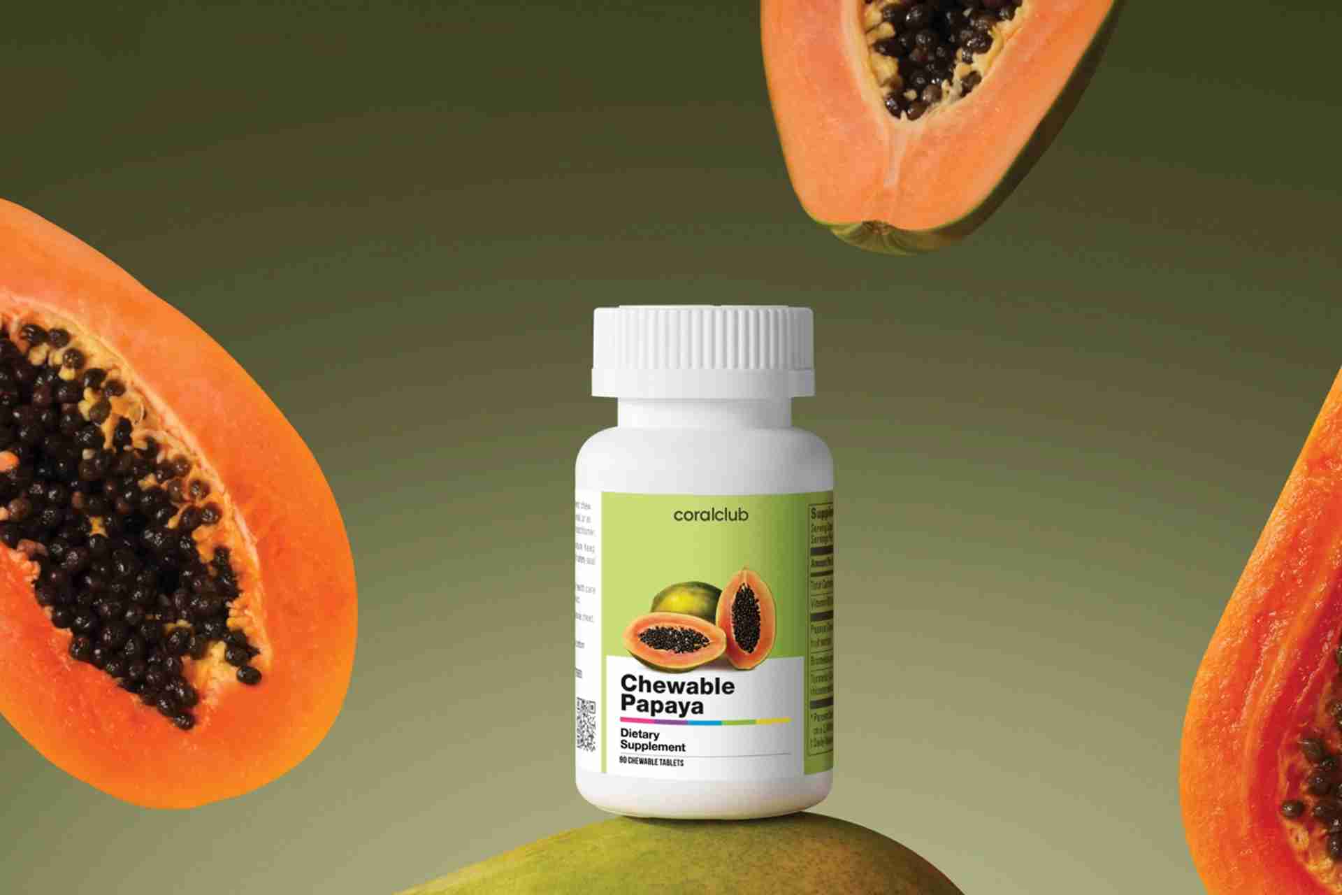 Sudedamosios dalys: gliukozė, užpildas mikrokristalinė celiuliozė, tikrųjų papajų ekstraktas, natūrali kvapioji medžiaga iš pasiflorų vaisių, saldiklis glicinas, bromelainas, rūgštingumą reguliuojanti medžiaga citrinų rūgštis, emulsiklis riebalų rūgšties magnio druskos, lipnumą reguliuojanti medžiaga kalcio karbonatas, dažinių ciberžolių šakniastiebių ekstraktas, saldiklis steviolio glikozidai, riboflavinas.