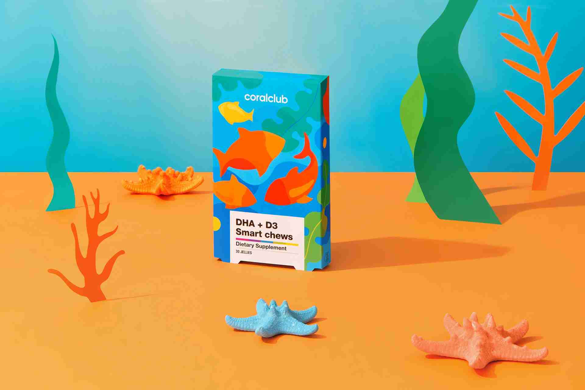 Žuvų taukai, saldiklis ksilitolis, vanduo, saldiklis sorbitolis, žuvų želatina, rūgštingumą reguliuojanti medžiaga trinatrio citratas, natūrali kvapioji medžiaga, tirštiklis akacijų derva, rūgštingumą reguliuojanti medžiaga obuolių rūgštis, L-askorbo rūgštis, saldiklis steviolio glikozidai, dažiklis paprikų ekstraktas, cholekalciferolis.