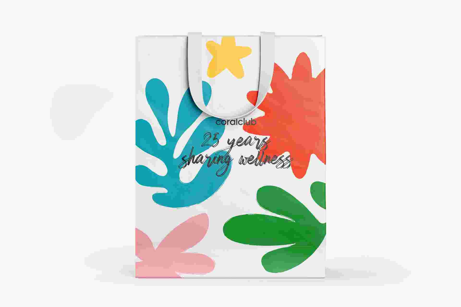 Dovanų maišelis su pagrindiniais Coral Club elementais